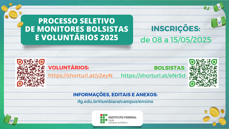 Publicados editais com vagas de Monitoria para alunos do Câmpus Itumbiara