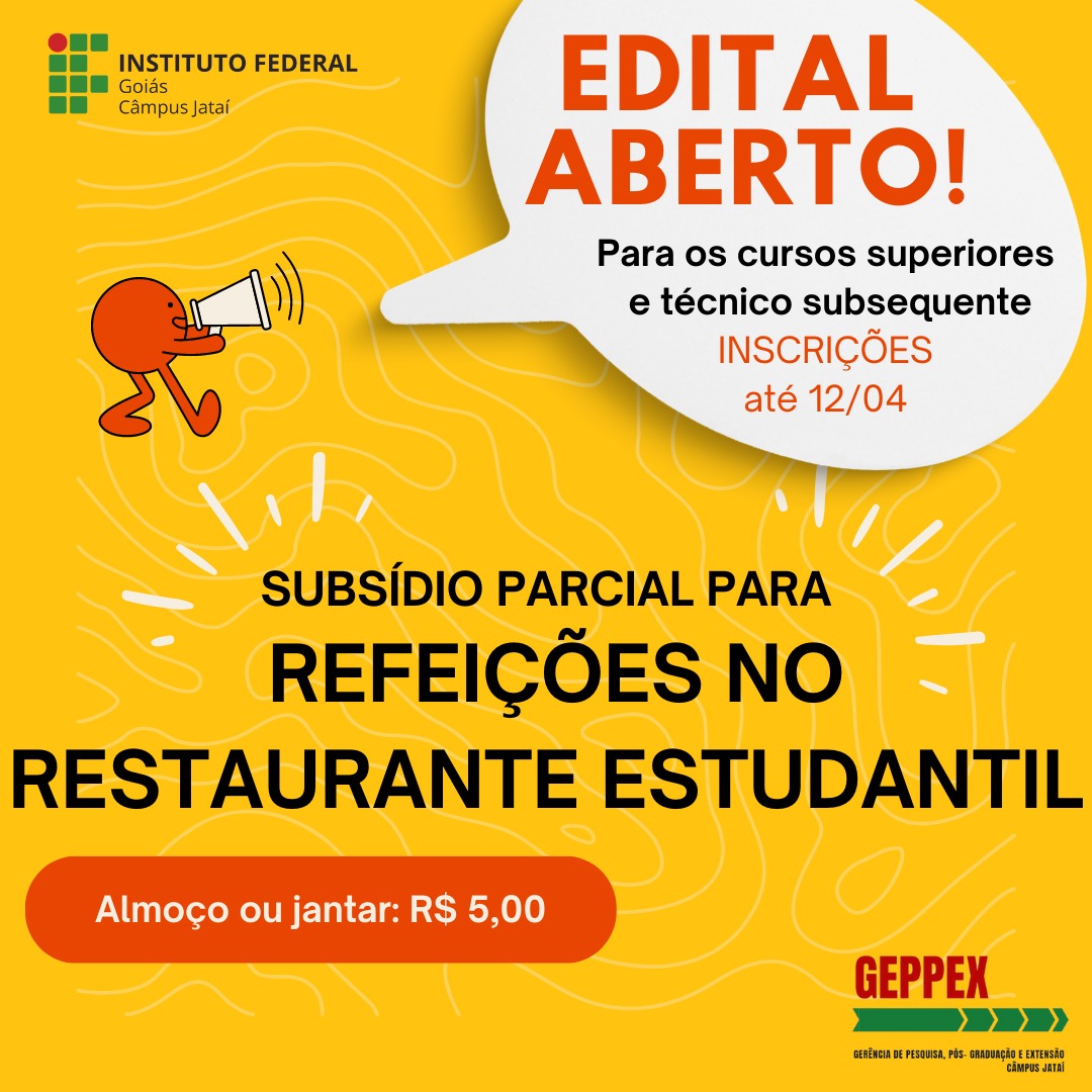 Inscrições para subsídio no Restaurante Estudantil seguem até o dia 12 de abril
