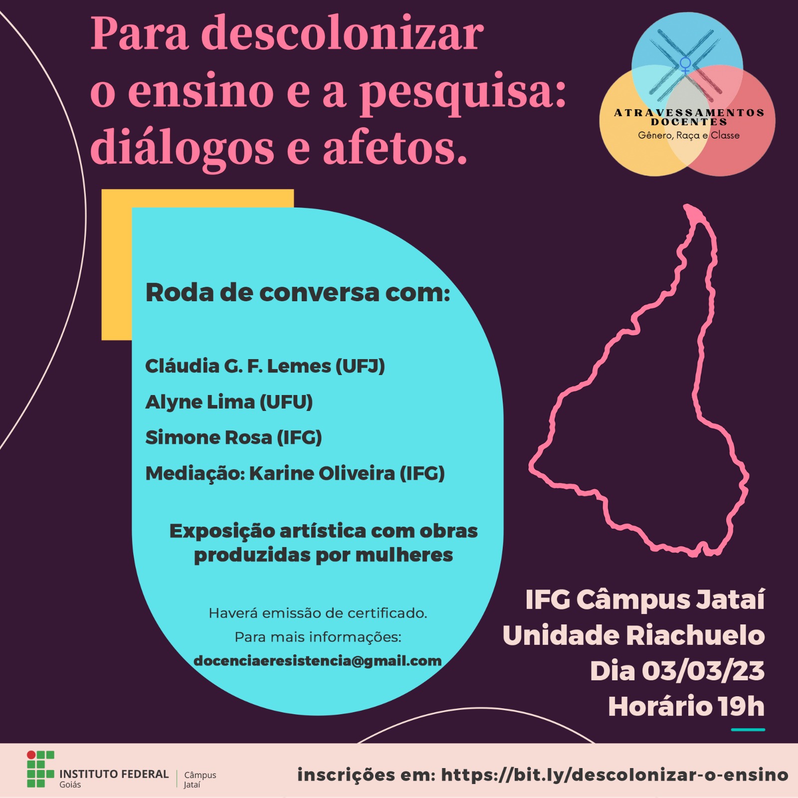 O Câmpus Jataí do Instituto Federal de Goiás (IFG) promoverá a roda de conversa "Para descolonizar o Ensino e a Pesquisa: diálogos e Afetos" na próxima sexta-feira, 3 de março, no...