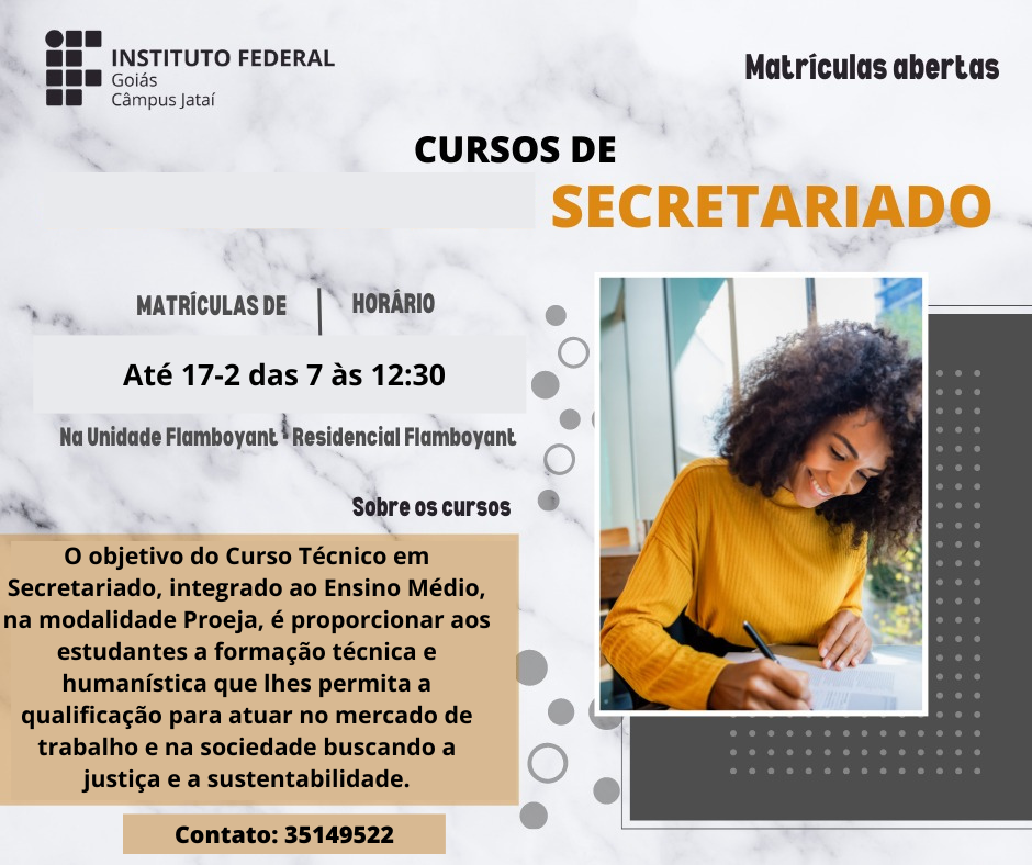 Os interessados no curso técnico integrado na modalidade Educação de Jovens e Adultos (EJA) de Secretariado podem se inscrever até o próximo dia 17 de fevereiro. No total foram oferecidas 29 vagas para o curso que tem duração de 4 anos e oferece formação técnica e de ensino médio ao mesmo tempo. O curso é noturno. Para concorrer às vagas, os candidatos devem procurar o câmpus das...