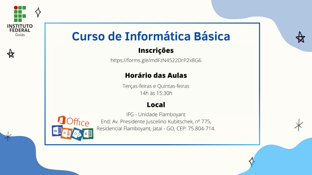 O Câmpus Jataí do Instituto Federal de Goiás (IFG) está com inscrições abertas para o curso de extensão em Informática Básica. Os interessados em participar do curso deverão...