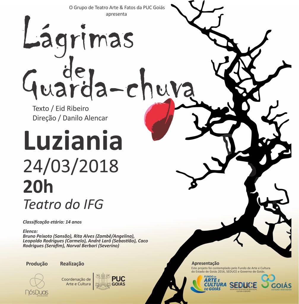 Você está aqui: Página inicial > Últimas Notícias > IFG > Câmpus > Luziânia > Notícias do Câmpus Luziânia > Câmpus recebe a peça teatral Lágrimas de Guarda-Chuva neste sábado, 24 de março