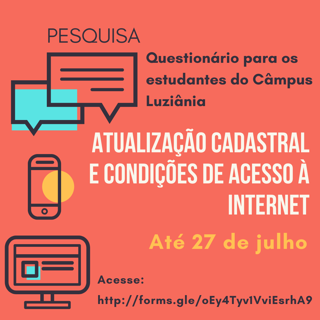 Câmpus Luziânia realiza pesquisa com os estudantes sobre condições de acesso à internet, estudo e saúde