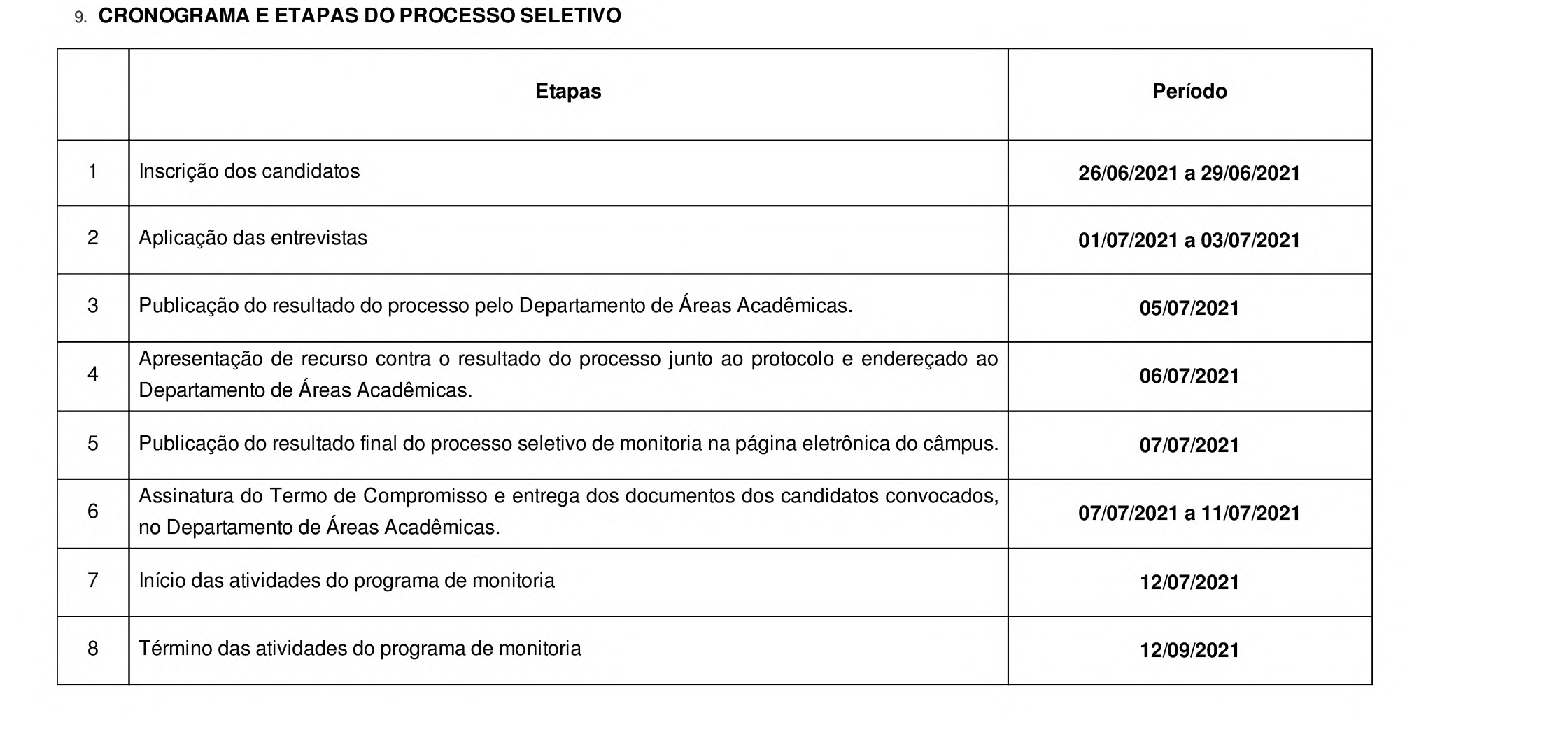 Inscrições abertas para o processo seletivo para admissão de monitores bolsistas