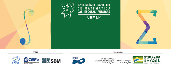 A 16ª Olimpíada Brasileira de Matemática das Escolas Públicas - OBMEP é uma realização da Associação Instituto Nacional de Matemática Pura e Aplicada - IMPA, com apoio da Sociedade Brasileira de Matemática (SBM).