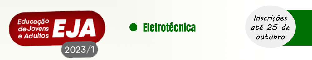 Você tem 18 anos ou mais? Ainda não tem o ensino médio? Temos uma seleção para você! São 36 vagas para o curso técnico integrado em Eletrotécnica na modalidade de Educação de Jovens e Adultos- EJA. O curso acontece no período noturno. E como o curso é técnico integrado, você realiza o ensino médio e um curso profissional conjuntamente. Legal, não é? Inscreva-se até o dia 25 de outubro, pelo site: www.ifg.edu.br/estudenoifg , menu: "EJA-EDUCAÇÃO DE JOVENS E ADULTOS" , depois vai até o link: "SELEÇÃO EJA 2023/1".