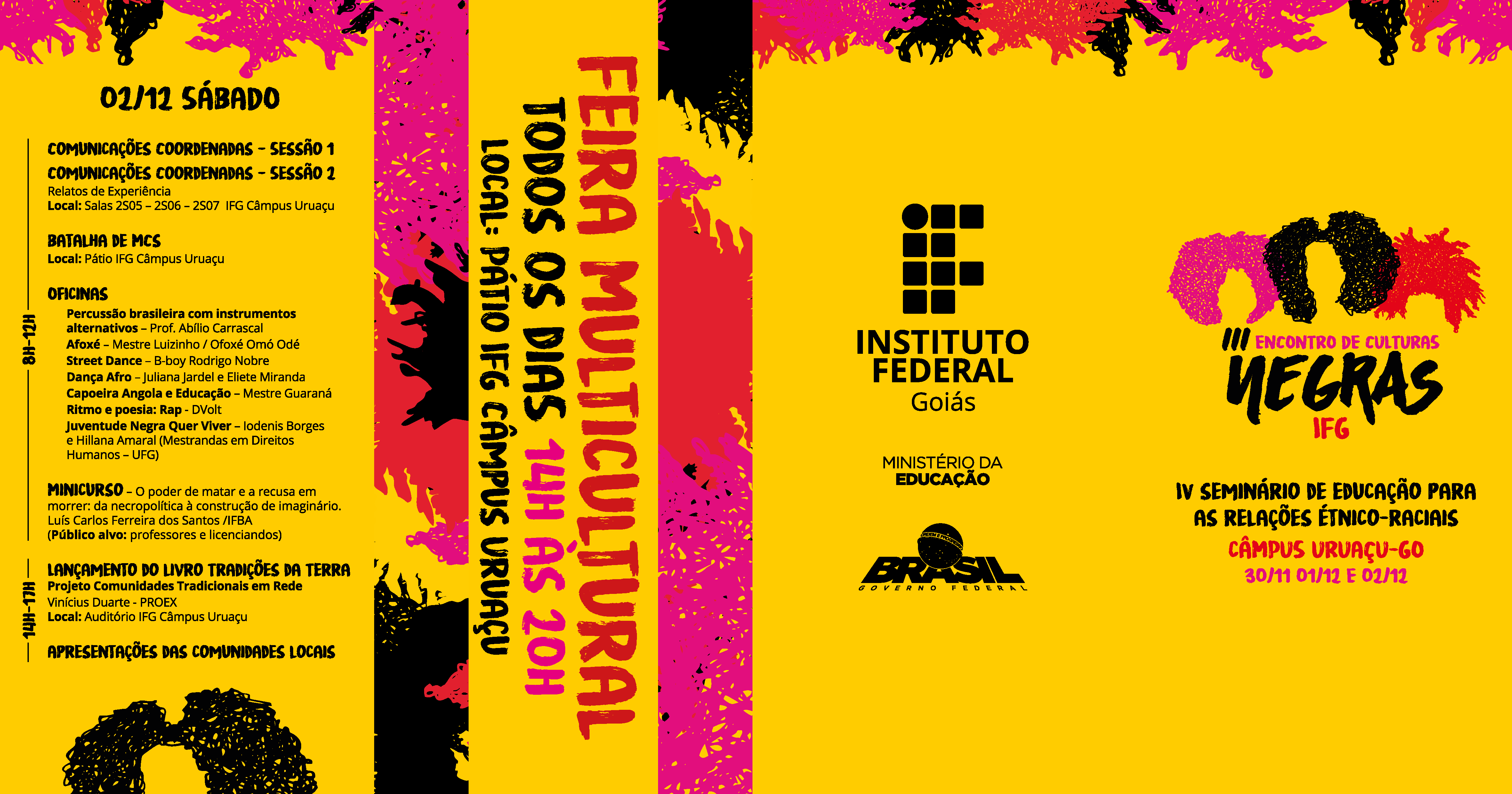 Você está aqui: Página inicial > Últimas Notícias > IFG > Câmpus > Valparaíso > Notícias do Câmpus Valparaíso > Inscrições abertas para III Encontro de Culturas Negras