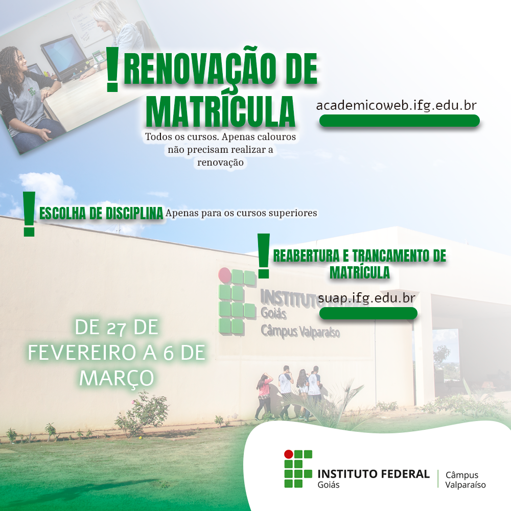 Você está aqui: Página inicial > Últimas Notícias > IFG > Câmpus > Valparaíso > Notícias do Câmpus Valparaíso