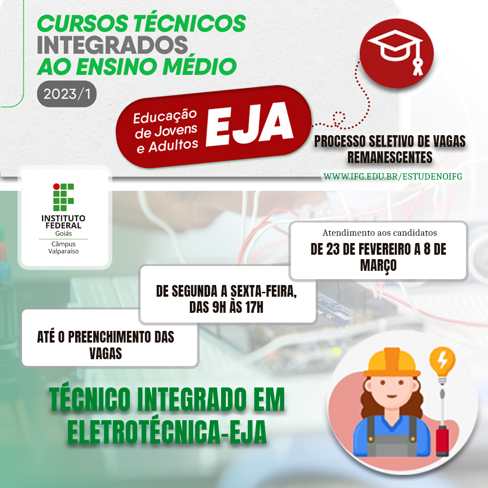 Últimos dias para se inscrever no curso técnico integrado em Eletrotécnica