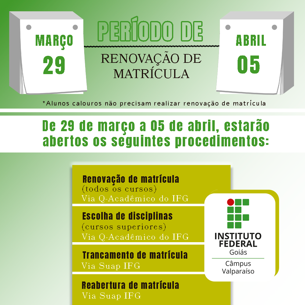 Alunos de cursos superiores do IFG podem se inscrever até o dia 15 de maio