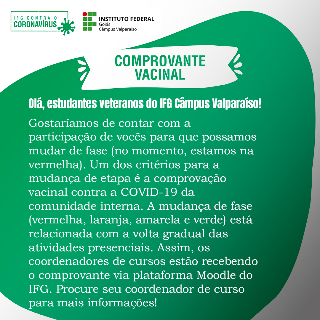 Alunos, saiba mais sobre a comprovação vacinal e também sobre a fase epidemiológica