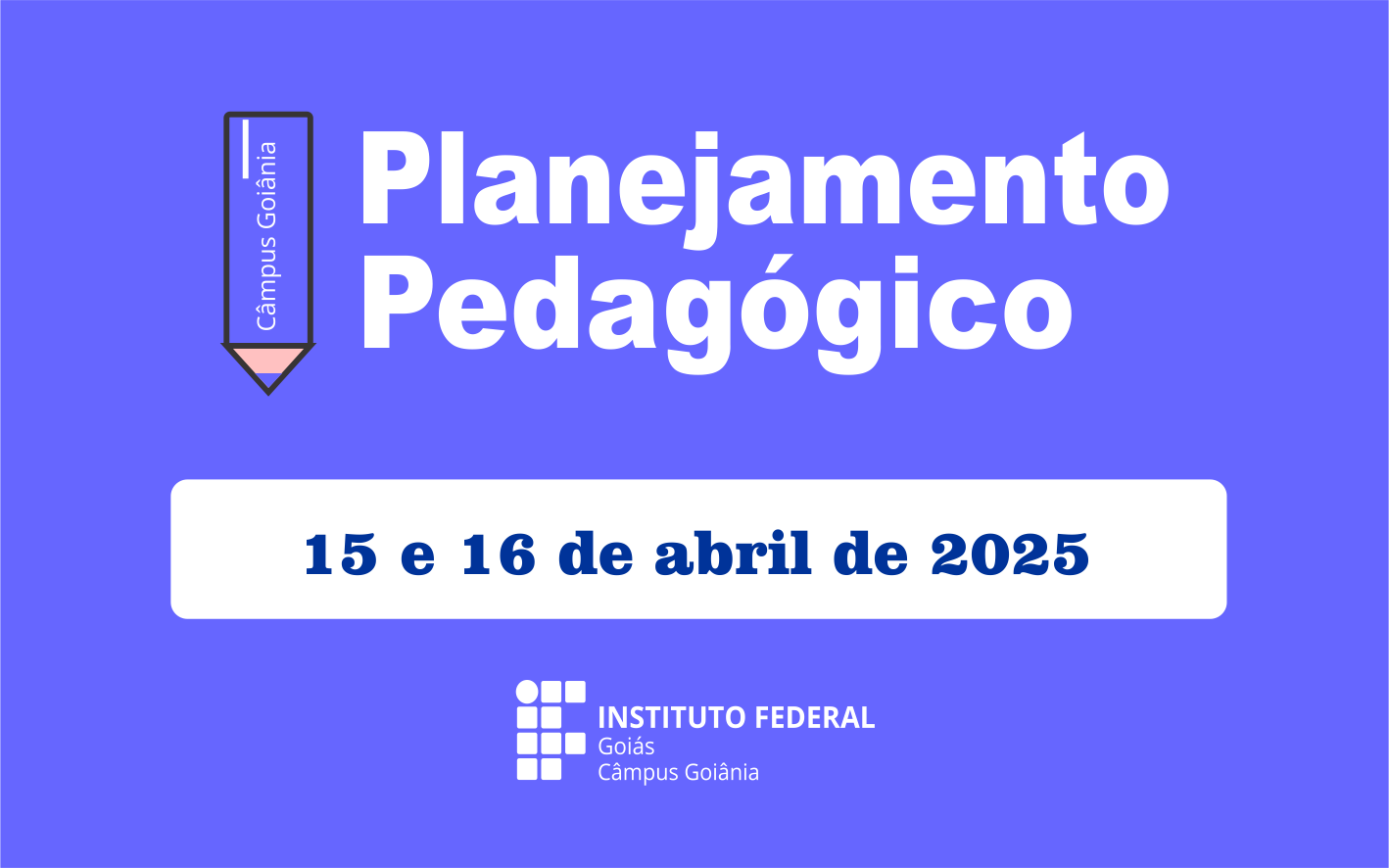 O Câmpus Goiânia do Instituto Federal de Goiás (IFG) realiza, nos dias 15 e 16 de abril, atividades de Planejamento Pedagógico 2025/1. A Diretoria-Geral do câmpus encaminhou e-mail convocando os servidores docentes a participarem da programação, que ocorre conforme previsto no Calendário Acadêmico 2025.