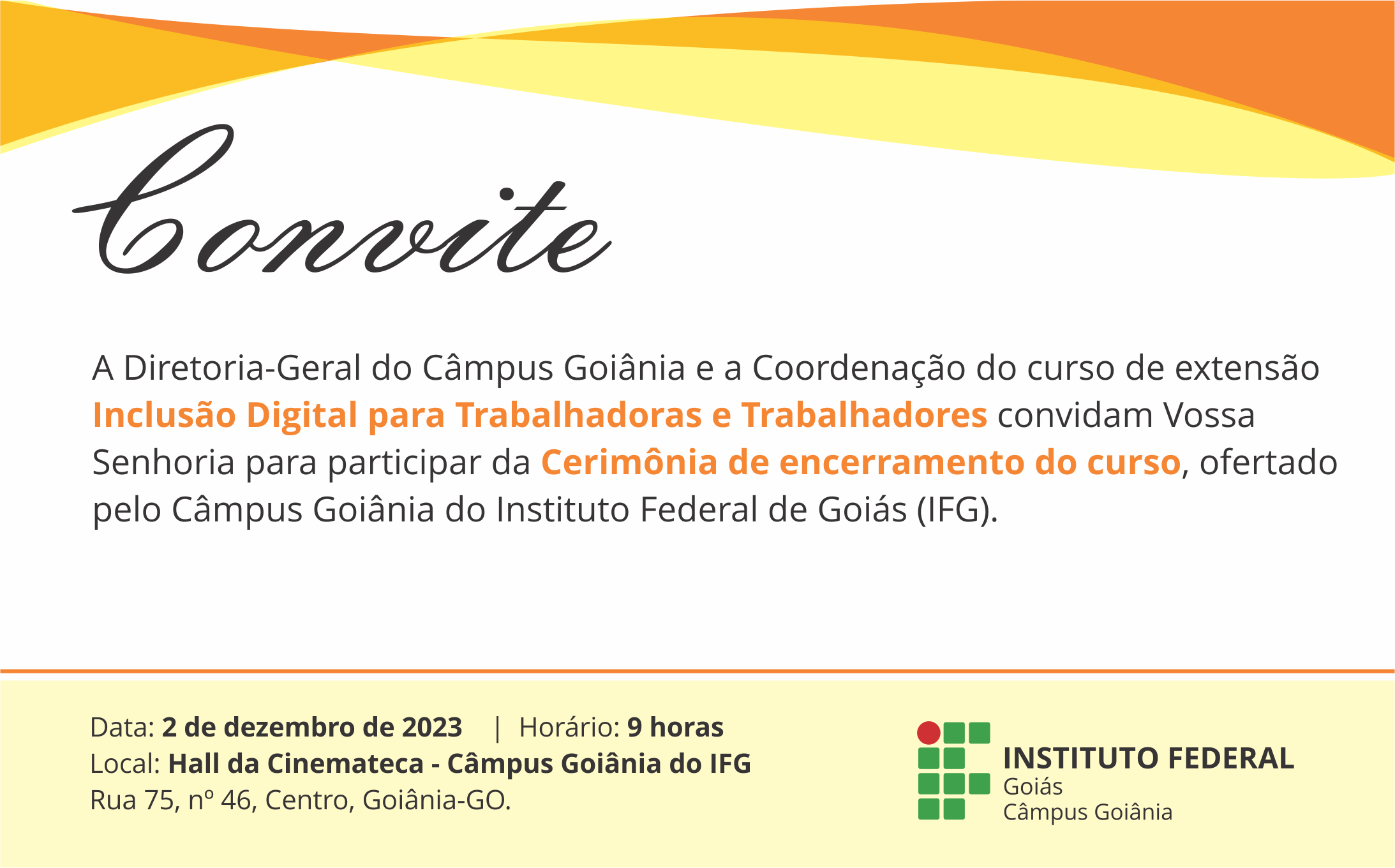Data: 2 de dezembro | Horário: 9 horas | Local: Hall da Cinemateca do Câmpus Goiânia