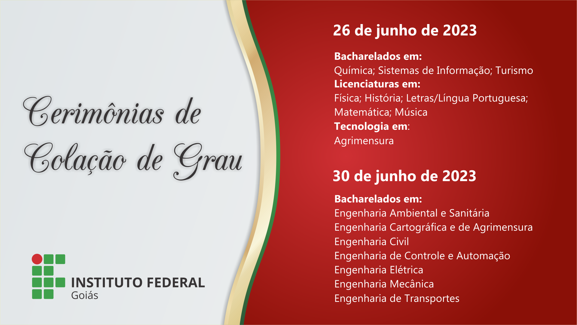 Data: 2 de junho | Horário: 19 horas | Local: Teatro do Câmpus Goiânia
