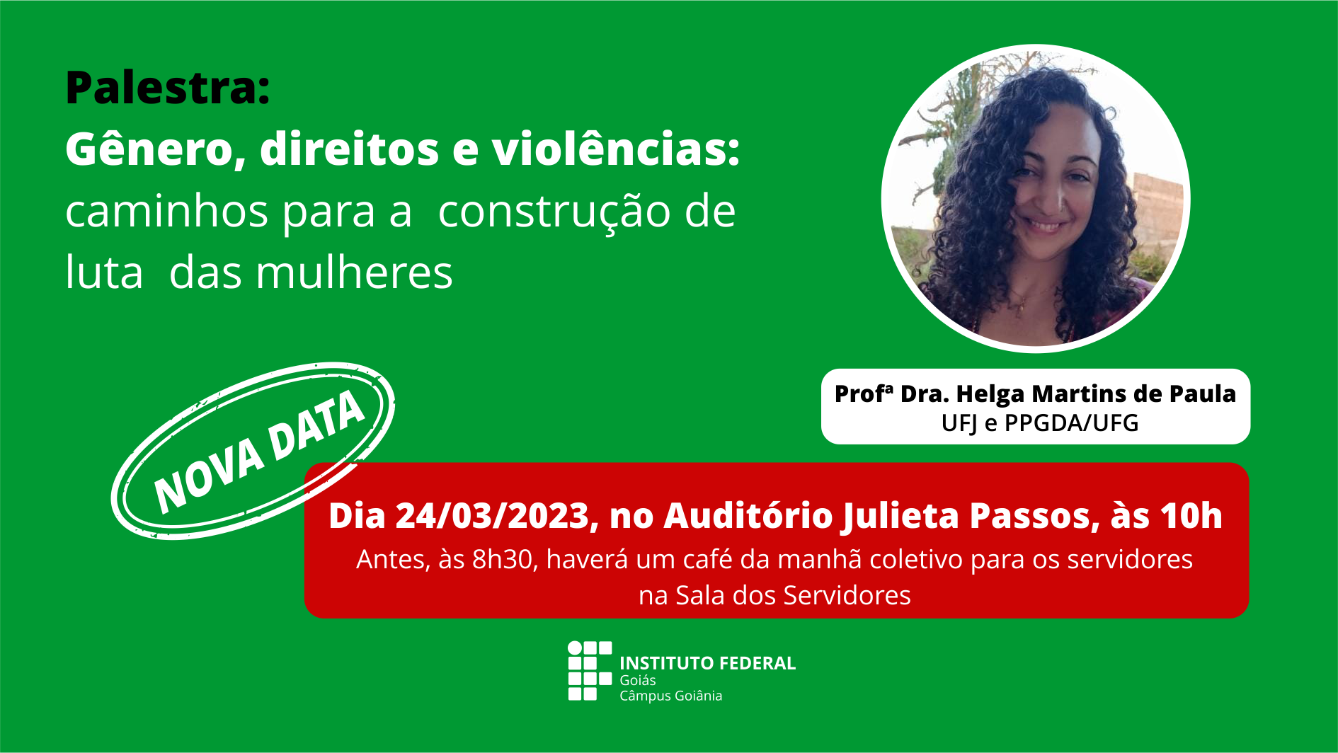 Adiada para: 24/03 | Horário: 10h | Local: Auditório Julieta Passos