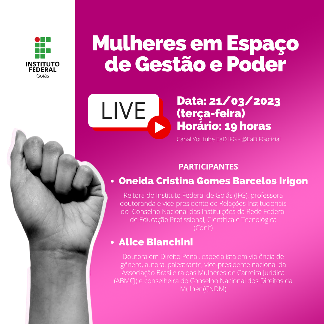 Data: 21/3/2023 (terça-feira) | Horário: 19h | Transmissão: Canal EaD IFG (YouTube)