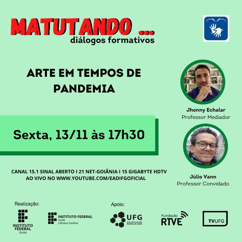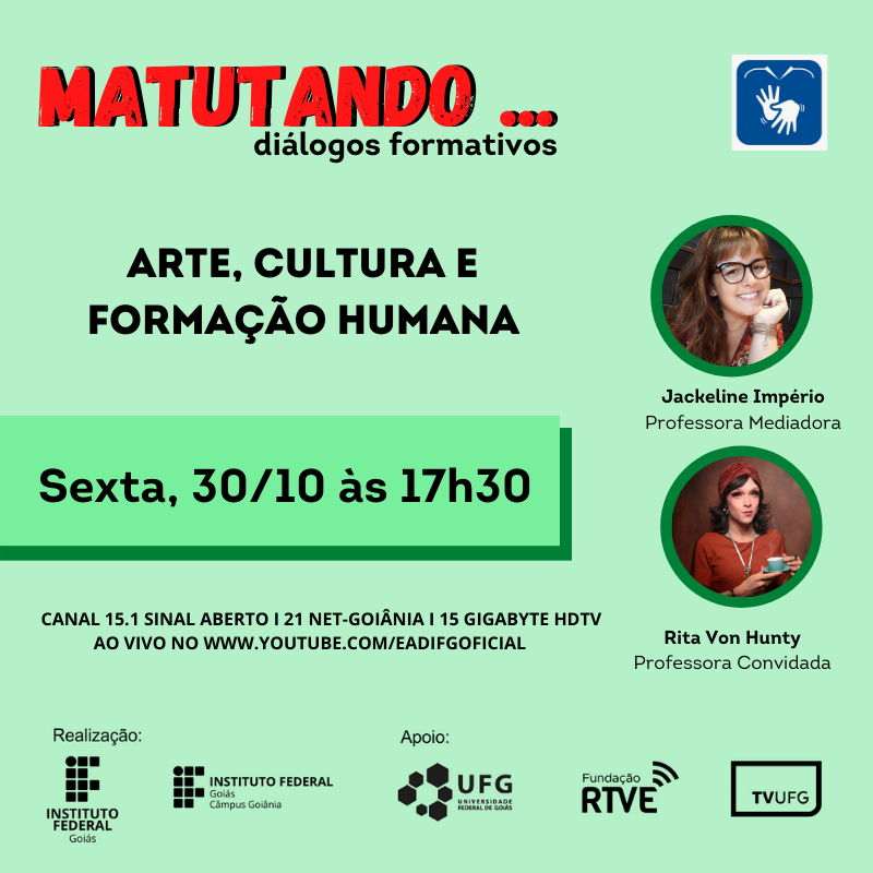 Data: 30 de outubro | Horário: 17h30 | Local: TV UFG e pelo canal da EAD do IFG no YouTube