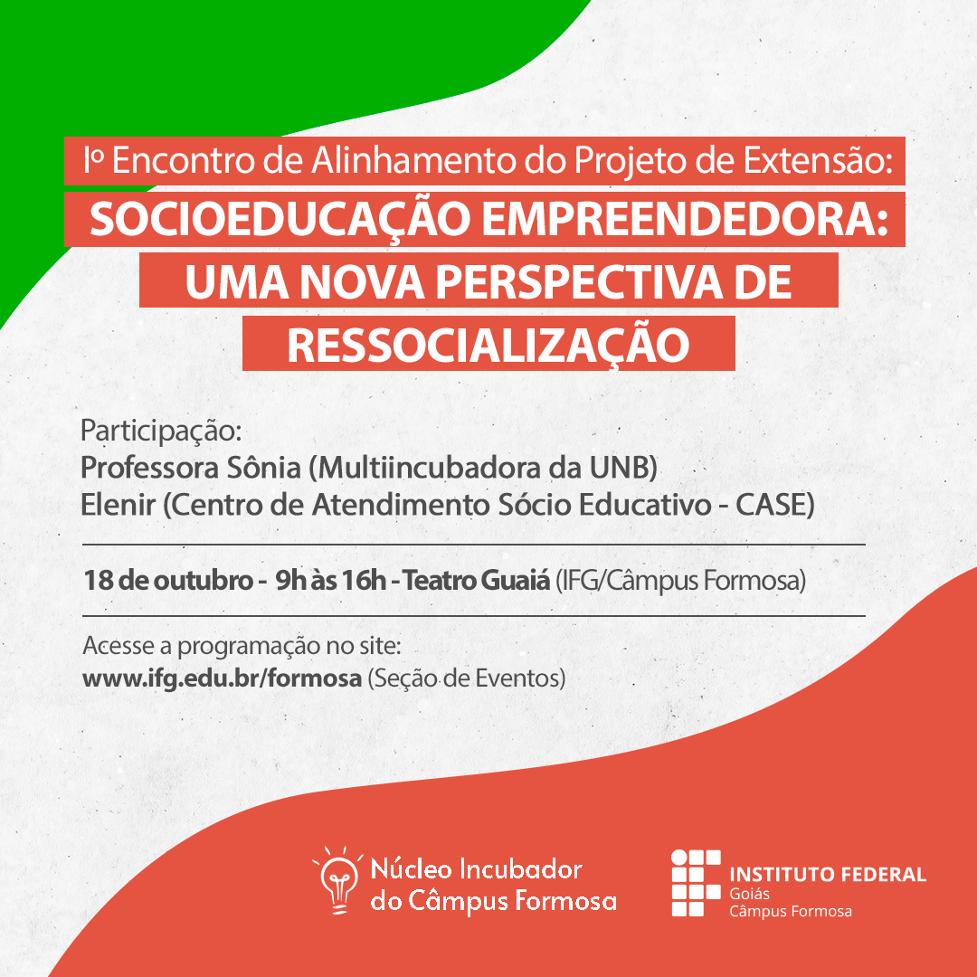 Você está aqui: Página inicial > Últimas Notícias > IFG > Câmpus > Formosa > Eventos (Câmpus Formosa) > Eventos Realizados (Câmpus Formosa) > Iº Encontro de Alinhamento Socioeducação Empreendedora - 18/10