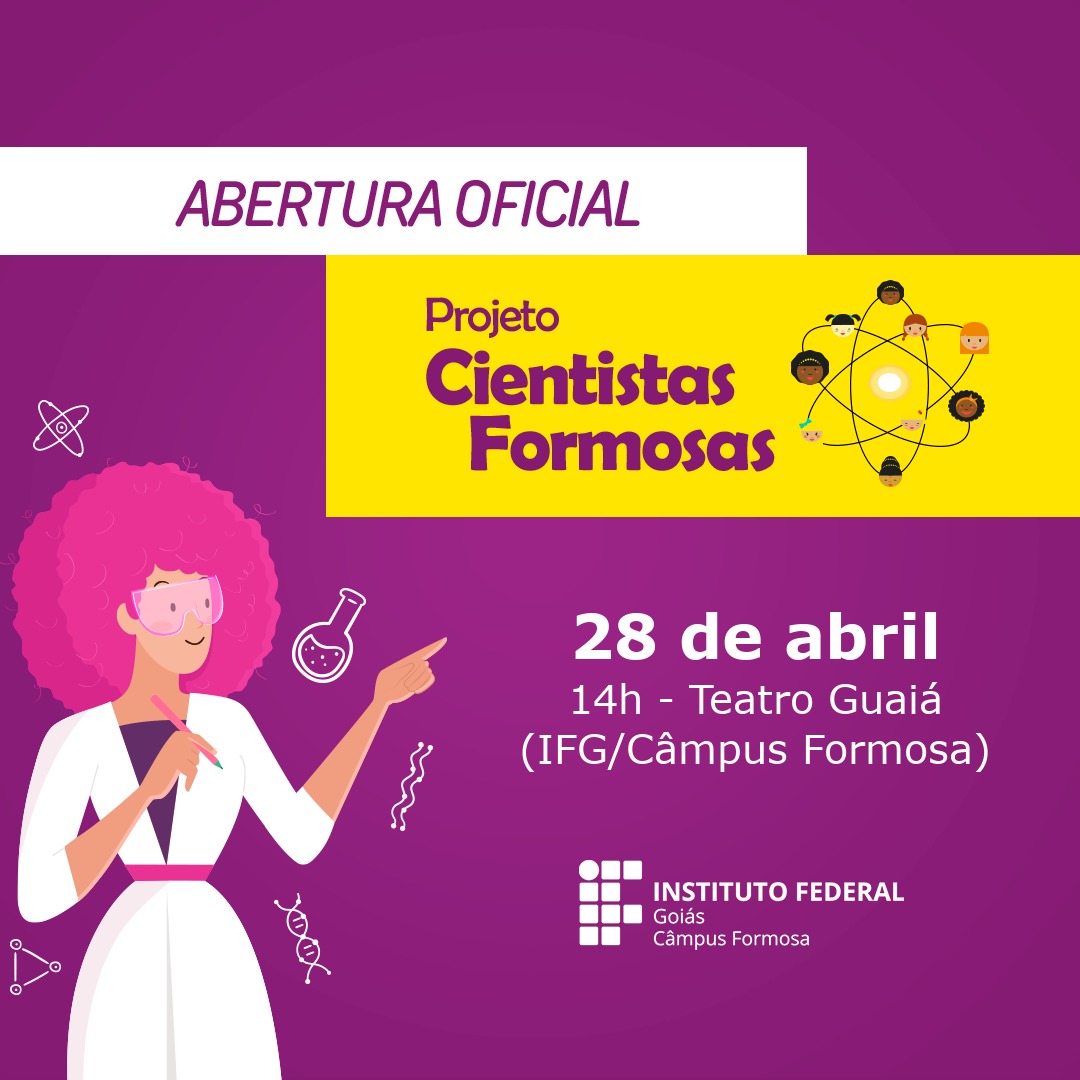 Será nesta sexta-feira, 28 de abril, a abertura do projeto de extensão Cientistas Formosas no ano de 2023. O projeto, a ser realizado com escolas da comunidade formosense, terá sua abertura no Teatro Guaiá, a partir das 14h.
