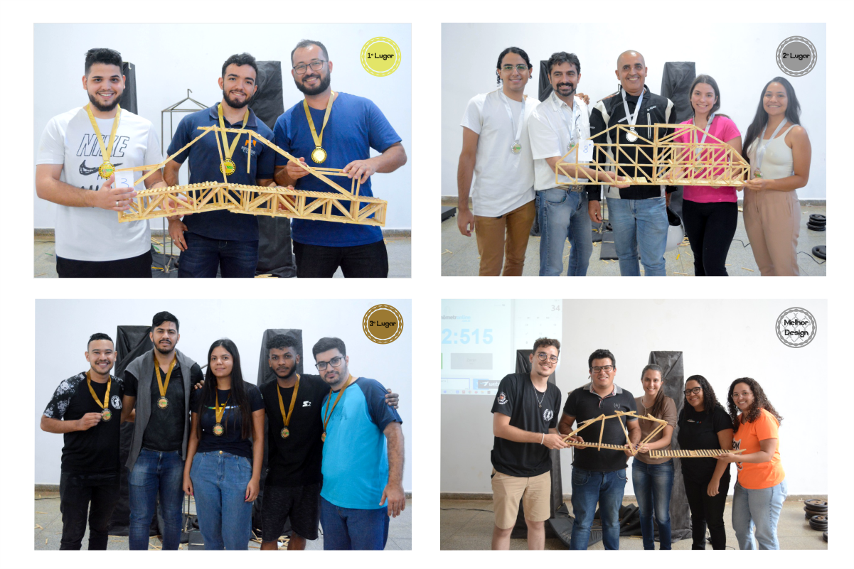 Desde as 14 horas, as pontes foram chegando uma a uma e sendo colocadas sobre a mesa para a apreciação do público, já que também haveria vencedora na categoria Melhor Design, escolhida pelos apreciadores do evento. Com a plateia formada, o professor Daniel Ordine, que atuou como locutor e comentarista, anunciou o início da competição, da qual os professores Divino Gabriel Lima Pinheiro, Alécio Mattana e Agno Vieira Alves conduziram os trabalhos.