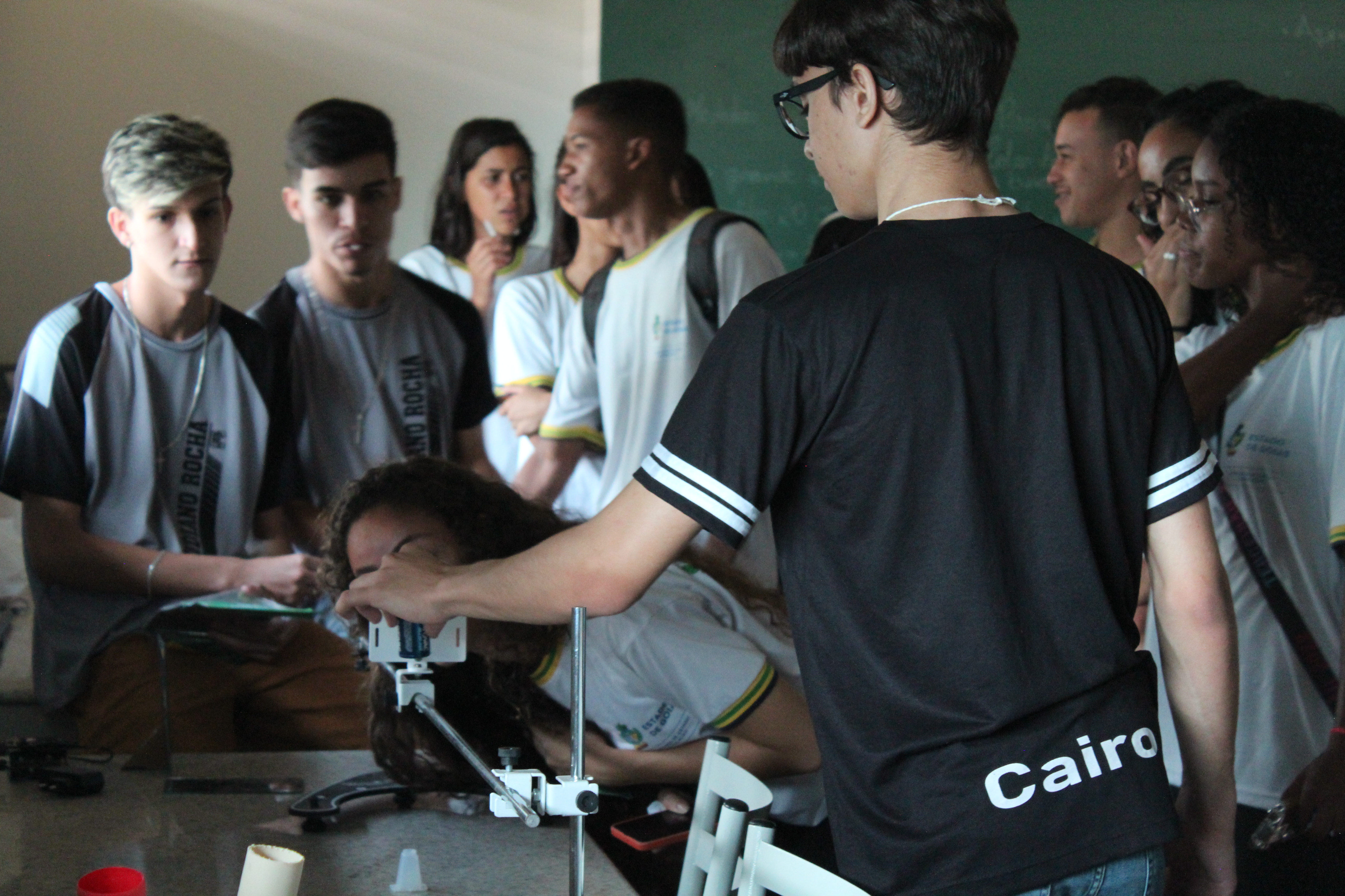 Os laboratórios, que atiçam a curiosidade e se tornam tão desejados por crianças e adolescentes, deram um "gostinho" do que se faz no IFG: ciência. O estudante da primeira série do curso Técnico Integrado em Saneamento em Tempo Integral, Cairo Henrique Vaz Cotrim, foi o apresentador do Laboratório de Física, recebendo estudantes de diversas escolas nos turnos matutino e vespertino.