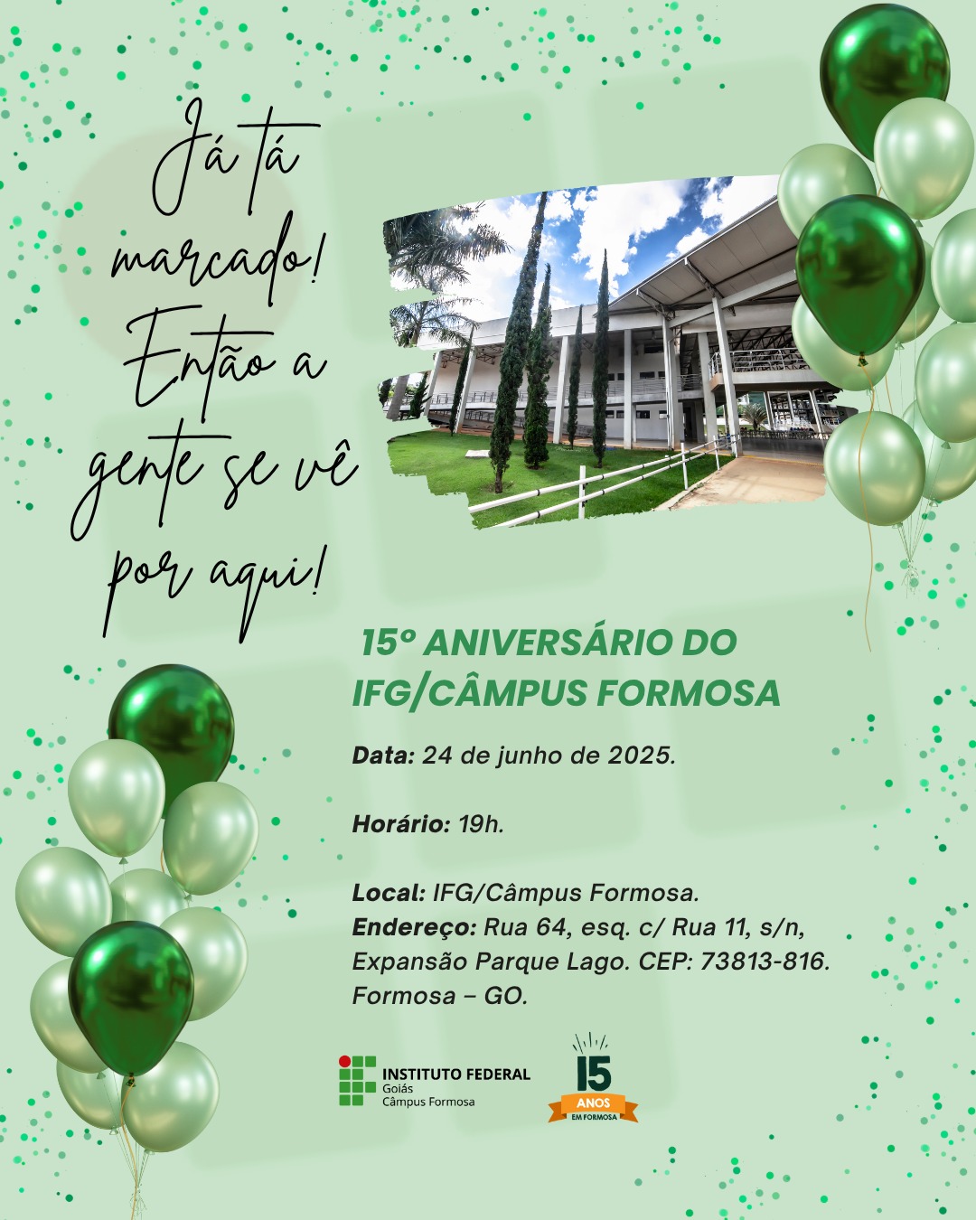 Com orgulho do passado e confiança no futuro, o IFG/Câmpus Formosa comemora seu aniversário não apenas com celebrações, mas com a certeza de que educar é plantar sementes de mudança. E nesses 15 anos, muitas delas já floresceram.
