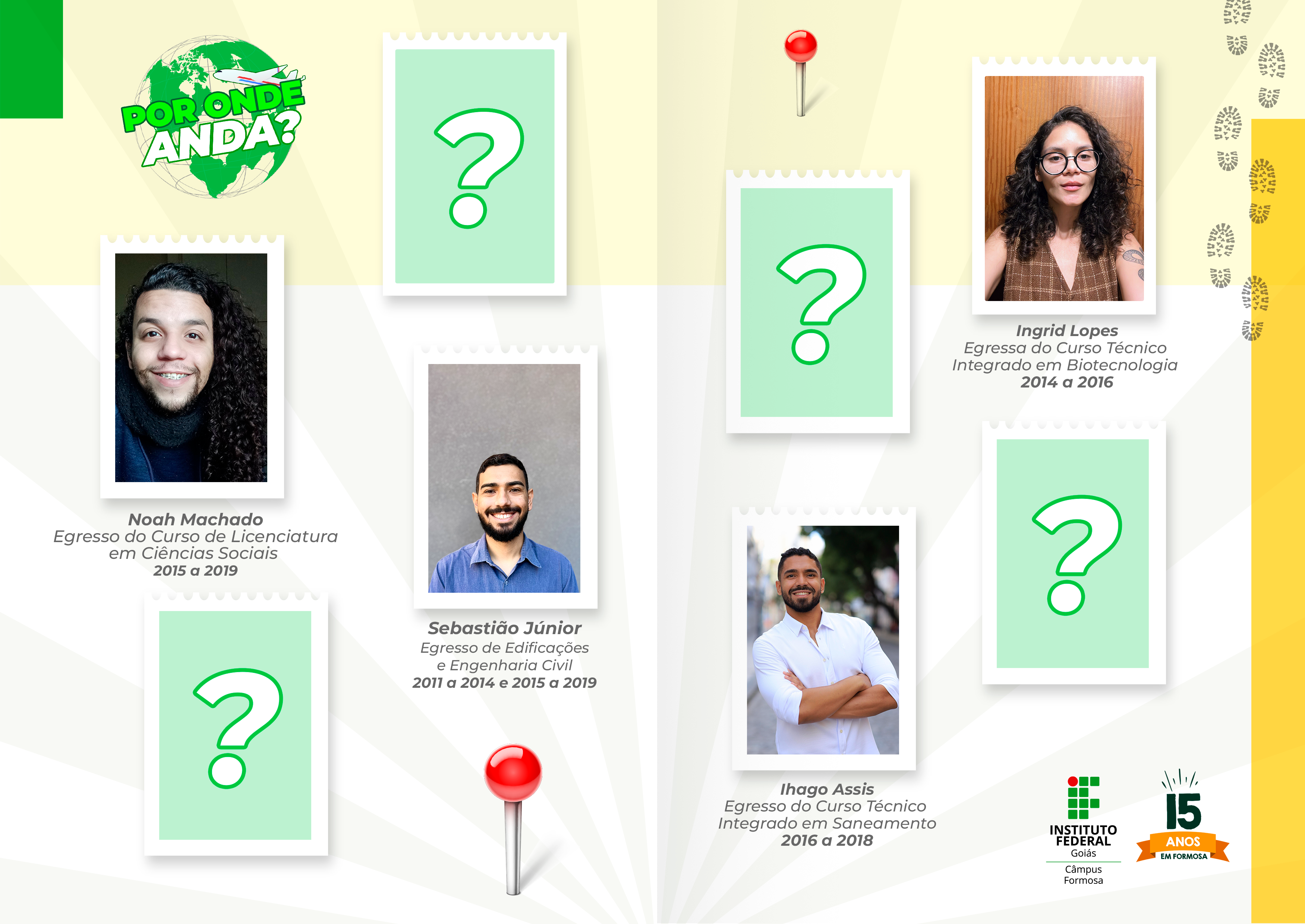 No décimo quinto ano de vida do Câmpus Formosa, para comemorar, a Coordenação de Comunicação Social (CCS) traz entrevistas que contam os pormenores da vida acadêmica e profissional dos egressos do Câmpus e ressaltam políticas e atuações do IFG na vida de seus estudantes. Assim, nasceu, em abril deste ano, o quadro Por onde anda?, com entrevistas em vídeo para o canal do Câmpus Formosa no YouTube, teaser para redes sociais, matérias jornalísticas para o site do IFG e um álbum de figurinhas digital que abraça alguns egressos que já passaram pelo Câmpus Formosa do IFG.