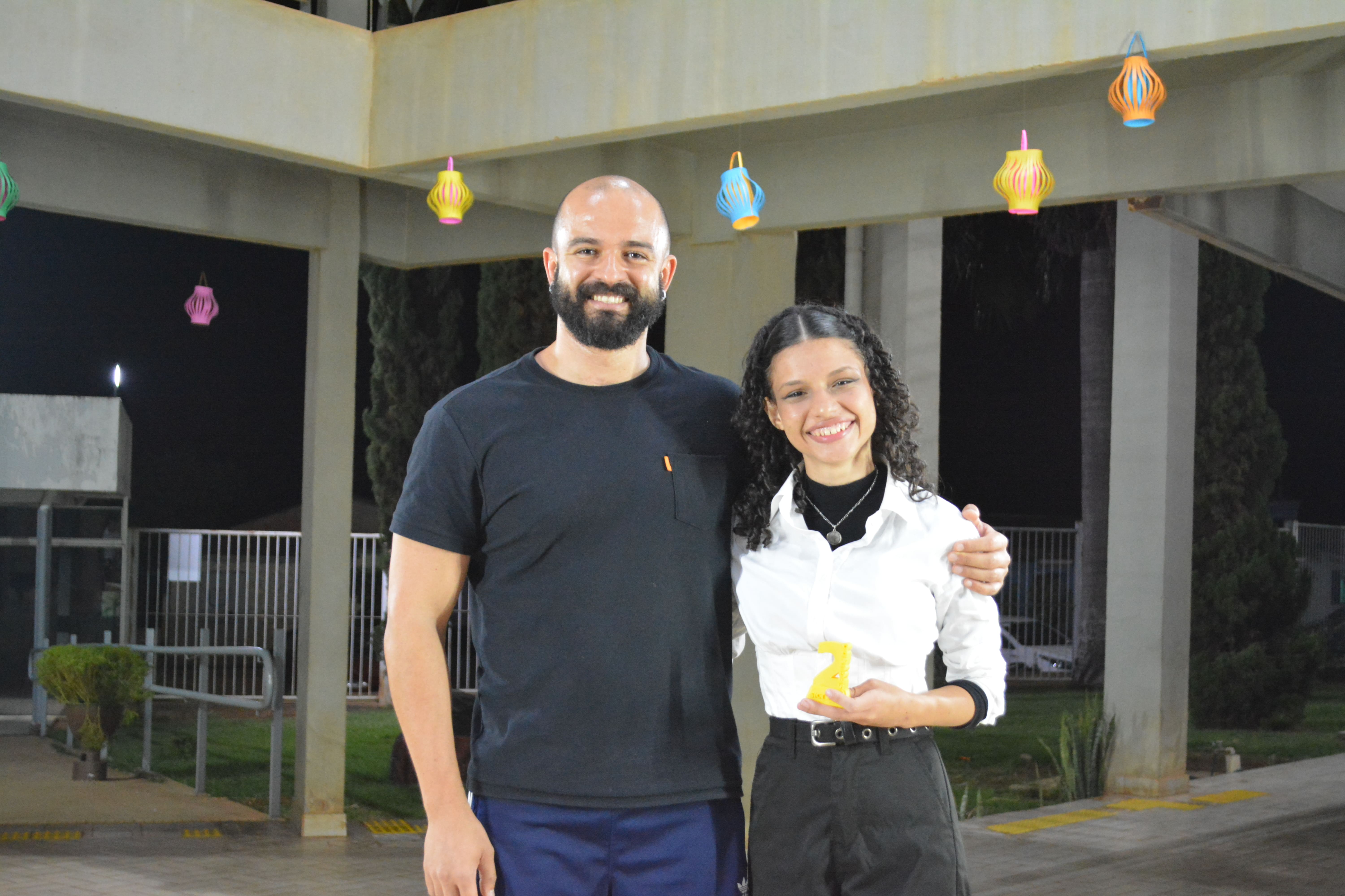 Renata e seu orientador Gustavo Chaves, no SICT Local