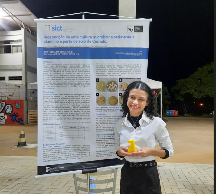 A investigação, conduzida pela estudante Renata Eduarda Gonçalves Marques, sob orientação do professor Gustavo Antônio Teixeira Chaves e co-orientação do professor Fabiano Vieira de Paiva, teve como foco a prospecção de culturas microbianas resistentes ao alumínio a partir de amostras de solo de Cerrado strictu sensu, coletadas no município de Formosa (GO).