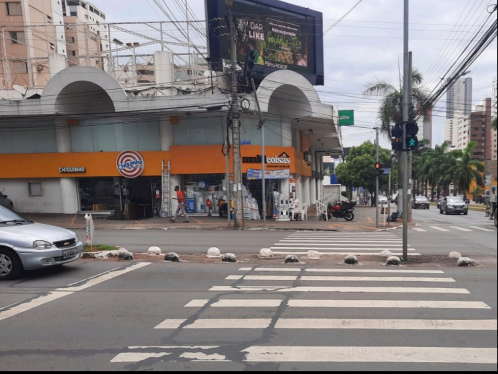 - Local da travessia de pedestre está obstruído por objeto urbano artificial (Av. T-7 com Av. T-1- Setor Bueno);