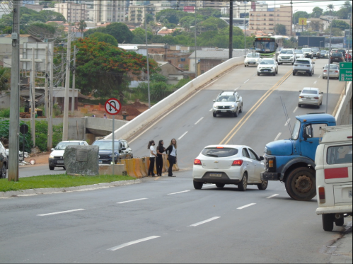 Ainda em vias com viadutos, o estudo relata a falta de opção para o pedestre, assim como ocorre também em saídas e entradas para “obras de arte”, como a que está localizada no encontro das Avenidas 85 e S1, no Setor Serrinha. A pesquisa mostra que viadutos e trincheiras buscam dar maior fluidez aos veículos, mas não programam brechas para que os pedestres atravessem. Tal travessia ocorre entre os veículos.