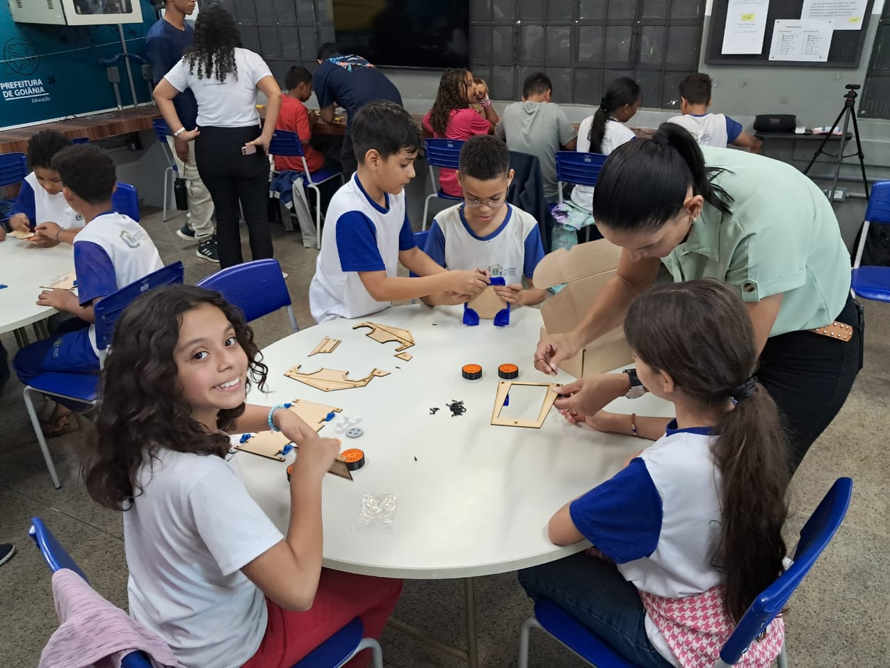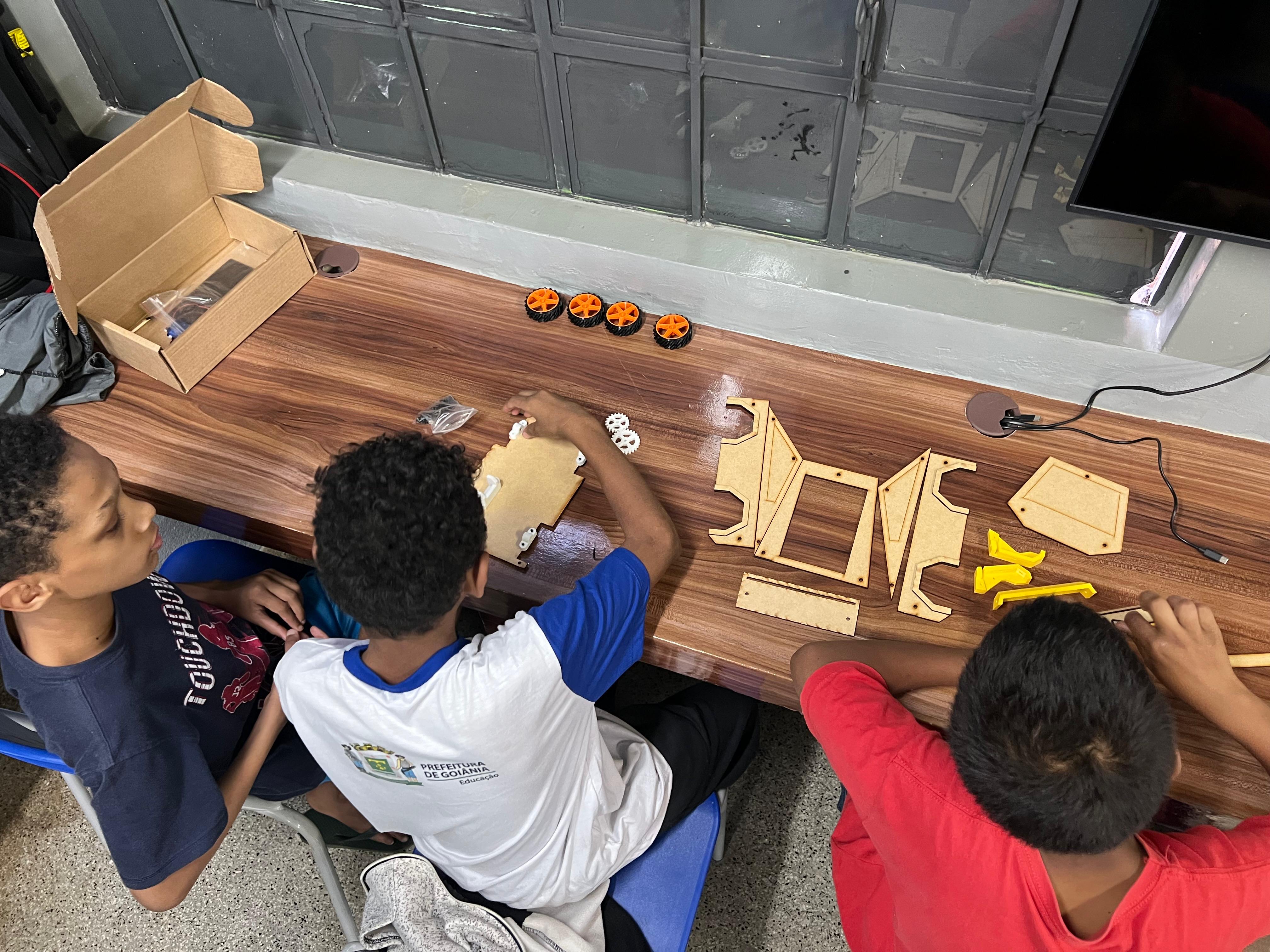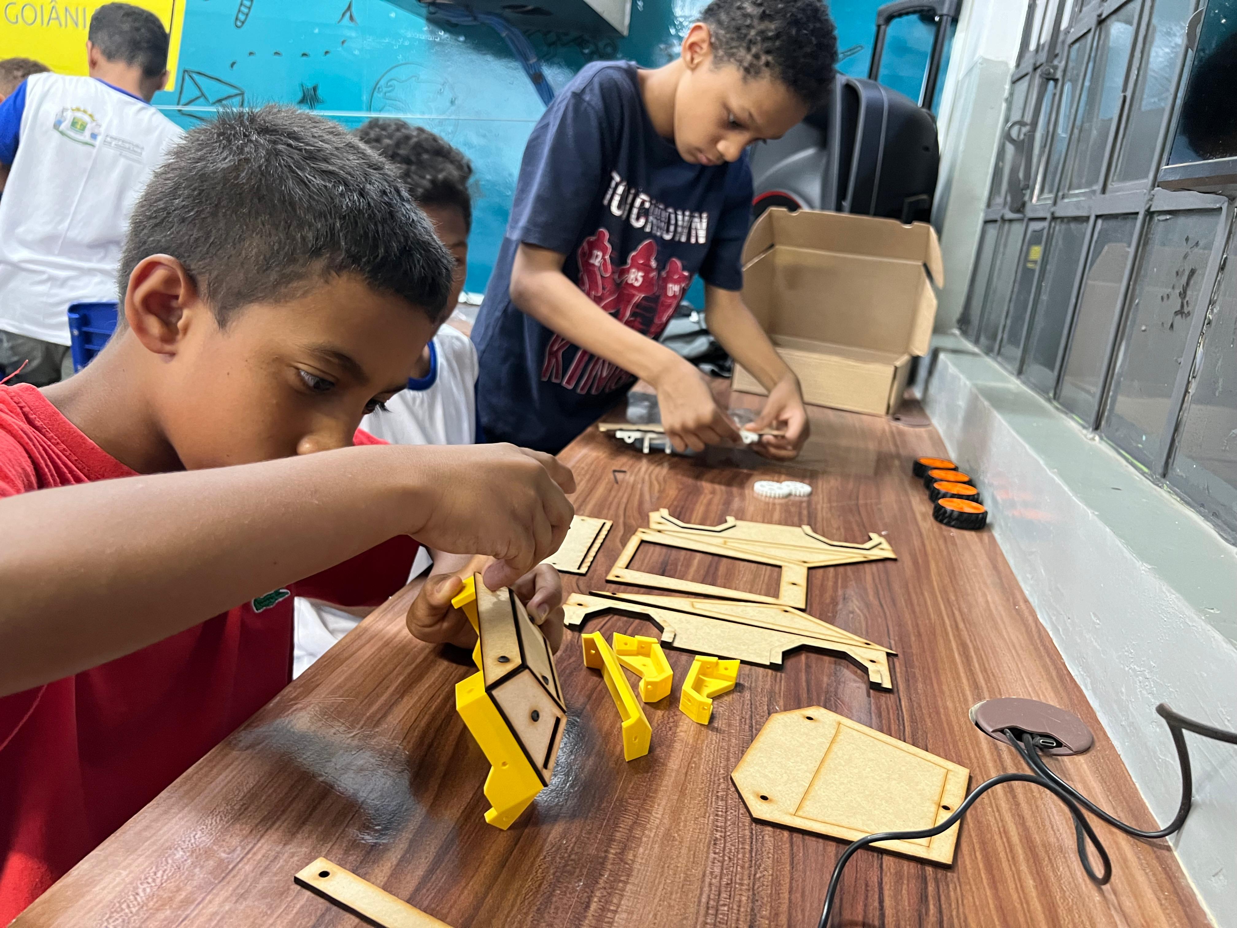 Alunos das escolas participantes do projeto recebem kits para a produção dos carrinhos e colocam a mão na massa em todas as etapas do processo.