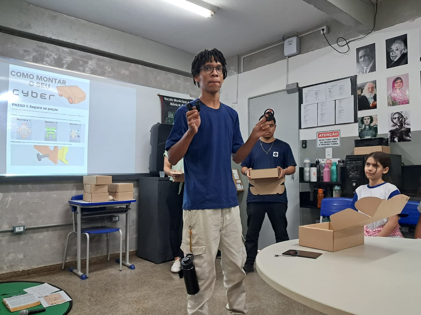 A ação é uma oportunidade de desenvolvimento dos estudantes do Câmpus Goiânia do IFG que atuarão como oficineiros, são eles: Thaynara Procópio Gonzaga, Rafael Paulino de Alcântara e Jonathan Carneiro dos Santos, do Bacharelado em Engenharia Mecânica, e Mariana Milhomem de Sousa, da Engenharia de Controle e Automação.