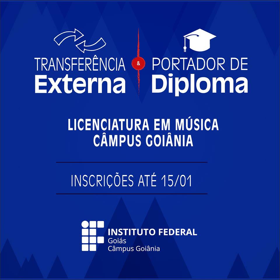 Podem se inscrever os candidatos que já são graduados e que querem cursar Licenciatura em Música, bem como estudantes de outras instituições de ensino que desejam solicitar a transferência para este curso, ofertado no Câmpus Goiânia do IFG. São disponibilizadas 10 vagas e as inscrições são feitas exclusivamente pela internet, na página do Centro de Seleção, até este domingo, 15 de janeiro.