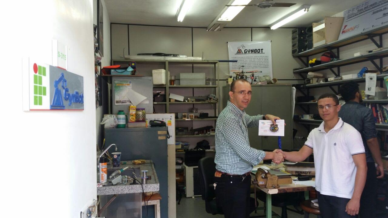 É a primeira vez em que discentes do câmpus participam da Olimpíada Brasileira de Robótica, já conquistando uma posição entre os melhores classificados na etapa nacional. Os alunos Henrique e Mikael integram a equipe do Grupo de Robótica Livre (Gyn Bot) do IFG – Câmpus Goiânia, coordenador pelo professor Fábio Marques. O resultado final da competição foi divulgado no final do ano passado, porém, a entrega das medalhas para os estudantes só foi realizada após o retorno das aulas no Câmpus Goiânia neste mês de janeiro.