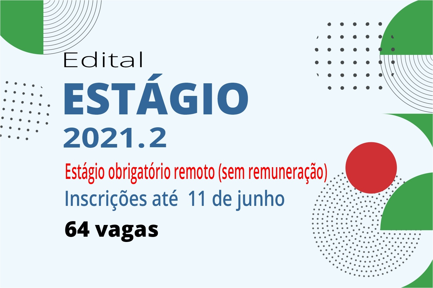 São 64 vagas disponíveis a discentes matriculados em cursos que contemplem o estágio curricular obrigatório no projeto pedagógico