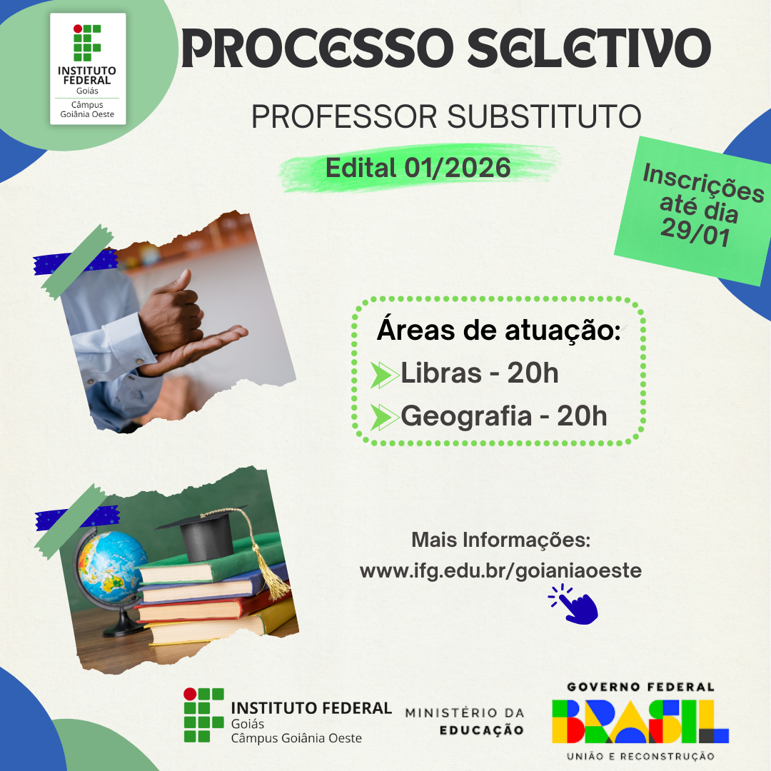 O Câmpus Goiânia Oeste do Instituto Federal de Goiás (IFG) publicou edital de processo seletivo simplificado para contratação de professores substitutos. De acordo com o edital ...