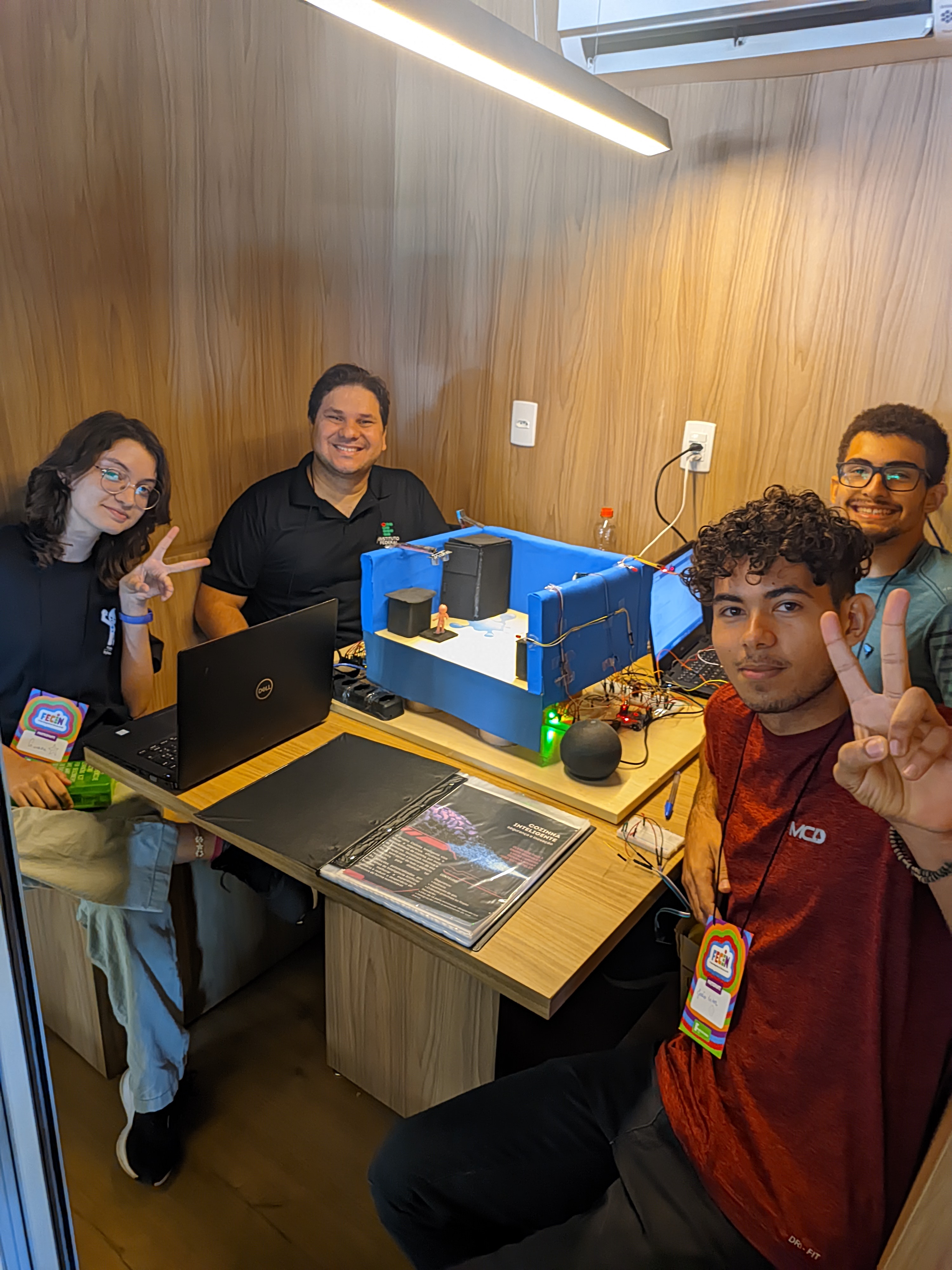O trabalho, que tem como objetivo usar a tecnologia para trazer segurança em uma cozinha domiciliar ou industrial, surgiu de uma demanda do câmpus e de uma visita a um outro evento com os estudantes: “Participamos com os alunos da edição deste ano do Campus Party e vimos ali muitas tecnologias sendo utilizadas sem finalidade prática, por isso tivemos a ideia de trazer a tecnologia com algo que pudesse agregar no nosso câmpus. Pensamos em segurança e inovação no Laboratório de Nutrição, quais tecnologias poderíamos aplicar ali, como usar a inteligência artificial para aumentar a segurança. Foi daí que nasceu a ideia de aplicarmos isso em um projeto local. Para isso fizemos um esboço, a maquete que apresentamos para mostrar a aplicação dessa tecnologia de forma visual, mostrar que dá para fazer, que é possível aplicar esse projeto, essa tecnologia para pessoas leigas. Nosso objetivo era disponibilizar uma tecnologia acessível, prática e de baixo custo. Quando fomos desenvolver o projeto, um dos critérios do edital era a acessibilidade, então a gente se preocupou com esse critério desde o início, em criar sensores de segurança em uma cozinha que pudessem ser utilizados também para pessoas cegas e surdas. Montamos o projeto para proporcionar essa acessibilidade por meio da criação dos sensores luminosos e dos sensores sonoros. No nível 2 do projeto iremos integrar esses sensores a Alexa, para ela ser responsiva e avisar qual risco está tendo na cozinha naquele momento. Além da maquete, criamos também um portfólio, tanto para as pessoas que querem replicar o projeto na cozinha da sua casa ou em uma cozinha industrial, como para as pessoas que desejarem utilizar como pesquisa”.