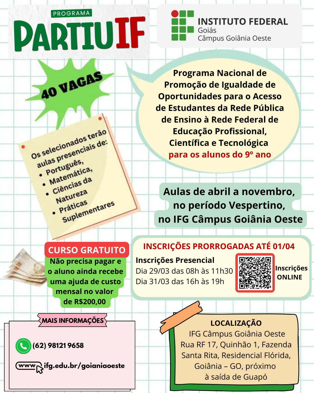 A Coordenação de Registros Acadêmicos e Escolares - CORAE do Instituto Federal de Educação, Ciência e Tecnologia de Goiás - CÂMPUS GOIÂNIA OESTE, INFORMA a lista dos alunos do...