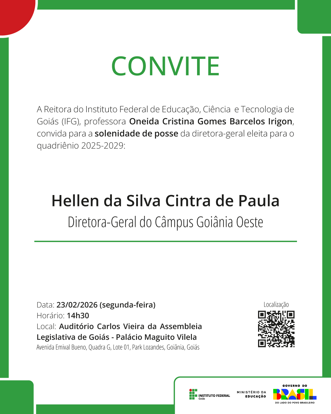 A vigência da bolsa é de até 12 meses, podendo ser prorrogada. A concessão não caracteriza vínculo empregatício com o IFG.
