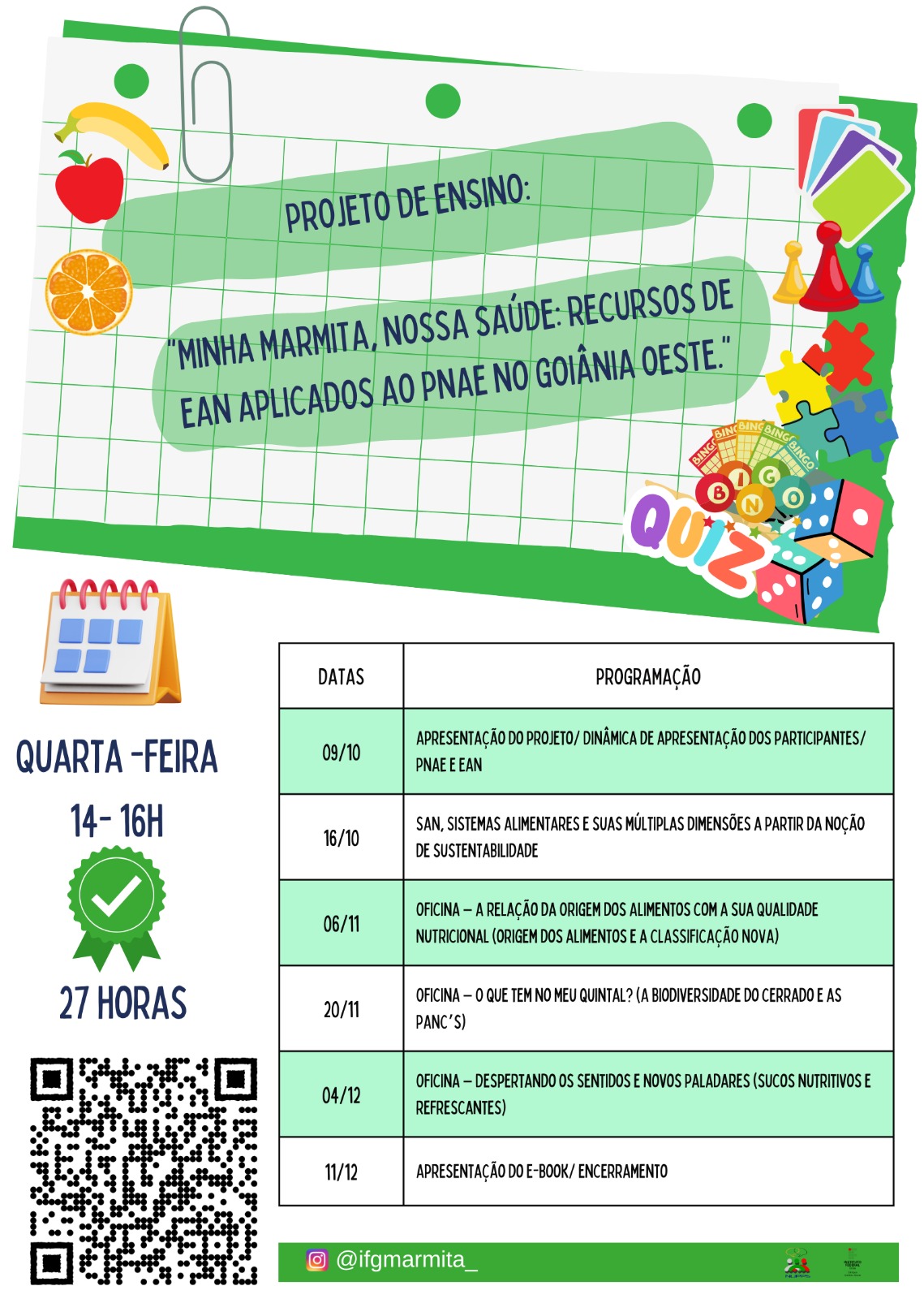 O tema desta edição do projeto é Recursos de EAN aplicados ao PNAE no Câmpus Goiânia Oeste