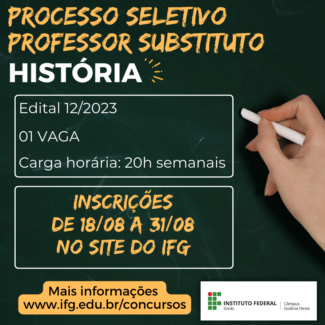 Inscrições deverão ser feitas do dia 18 ao dia 31 de agosto no site do IFG
