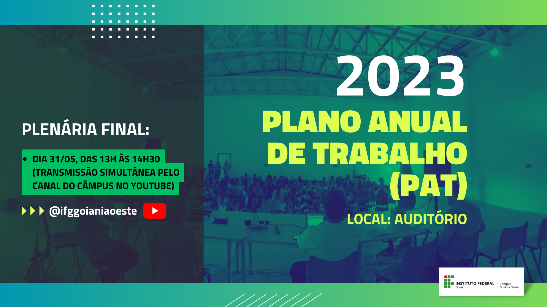 O evento terá transmissão pelo YouTube e pelo canal EaD IFG oficial.
