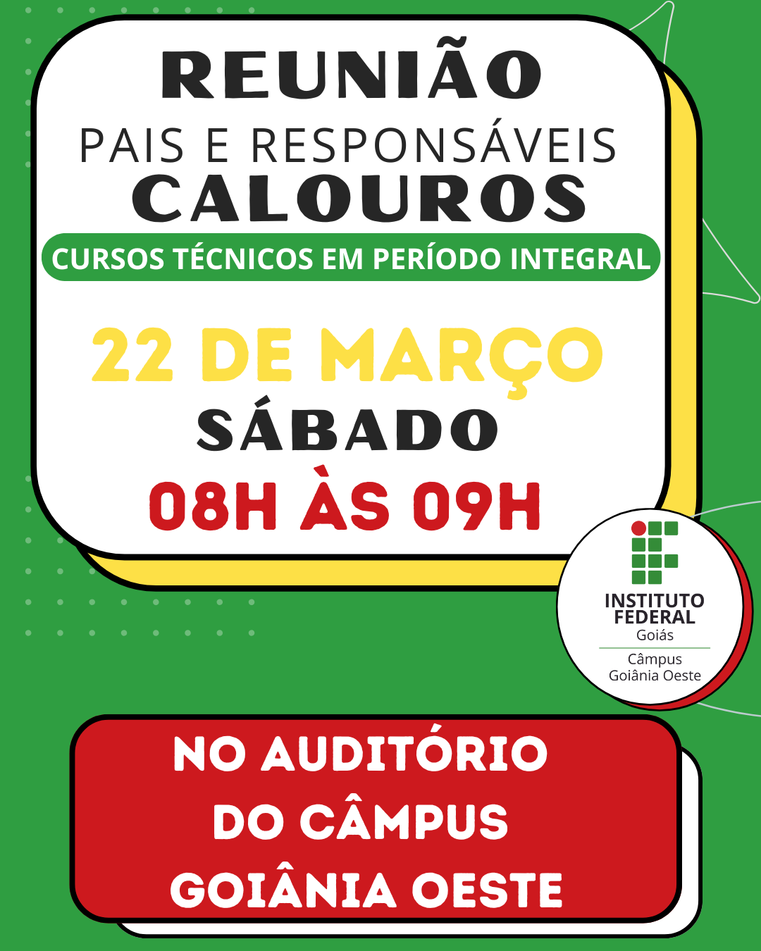 Reunião será presencial a partir das 8h no auditório do Câmpus Goiânia Oeste