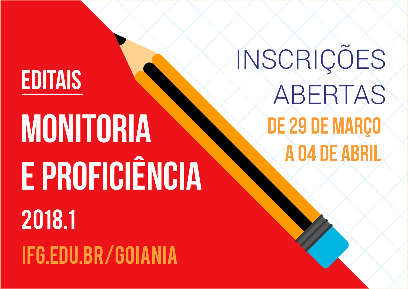 O prazo de inscrição nos editais vai de 29 de março a 4 de abril, exclusivamente pelo site