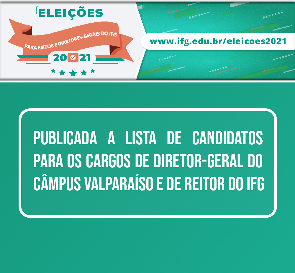 Publicada a lista de candidatos aos cargos de diretor do Câmpus Valparaíso e de reitor do IFG