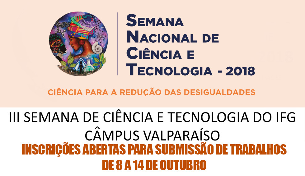 A inscrição para submissão de trabalhos é para alunos do IFG Câmpus Valparaíso, já as atividades da Semana são destinadas para toda a comunidade