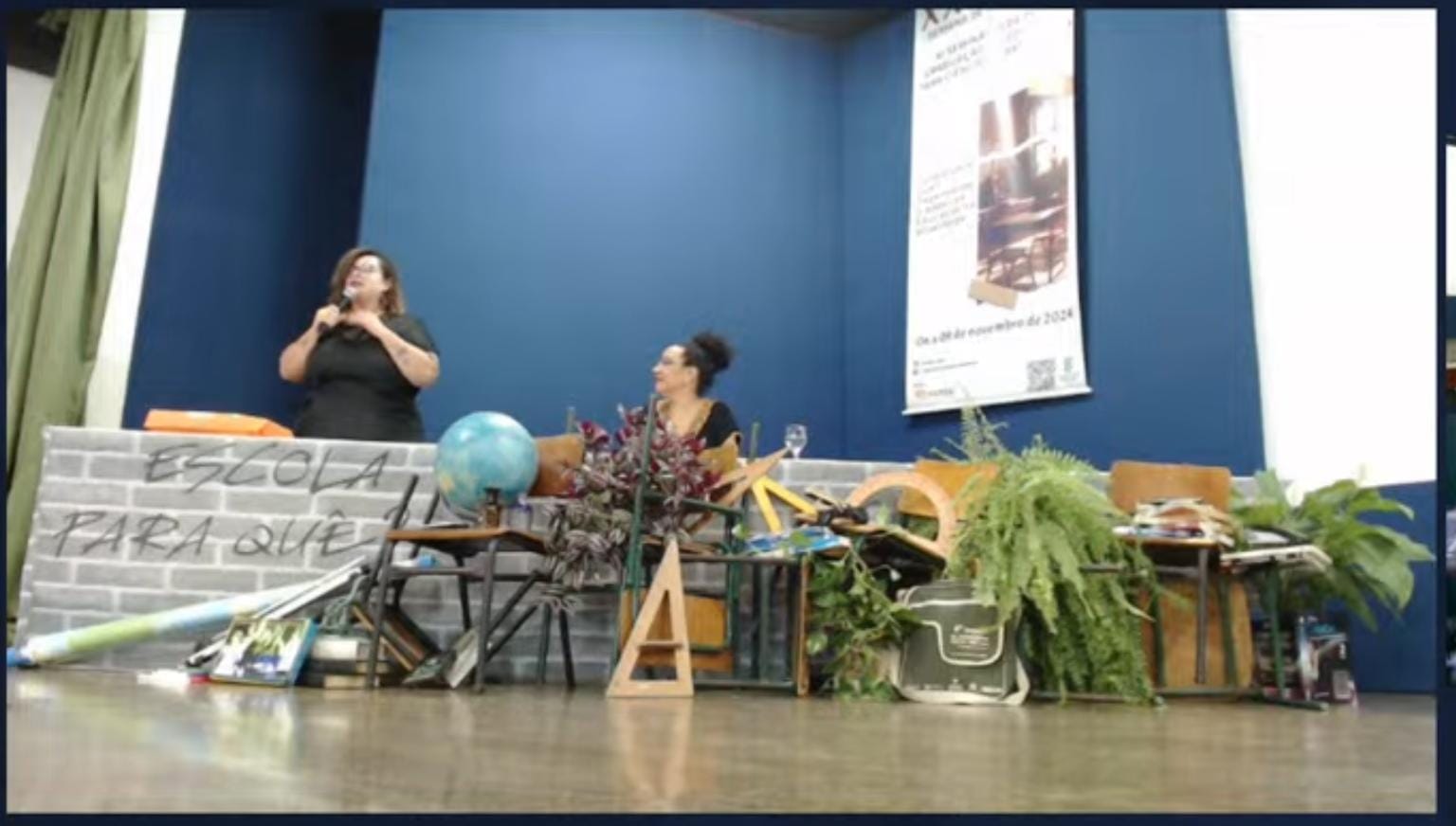 Por fim, a noite contou com uma palestra da professora doutora Monica Abrantes Galindo, do Instituto de Biociências, Letras e Ciências Exatas (Unesp - São José do Rio Preto). Intitulada "Escola pra quê? Escola pra quem? Repensar nossos papéis", a palestra trouxe reflexões instigantes sobre o lugar da mulher negra em nossa sociedade e nas Ciências, destacando como o colonialismo e o sexismo continuam a apagá-las e a invisibilizá-las. A professora ressaltou como o racismo e o sexismo estão profundamente enraizados em nossa cultura e, por consequência, em nosso ambiente escolar, mas que isso não significa, entretanto, que eles não possam ser superados. Pelo contrário, ela defende que os educadores devam repensar o seu papel no contexto escolar sempre com os olhos voltados às diversidades que compõem nossa realidade, história e cultura.