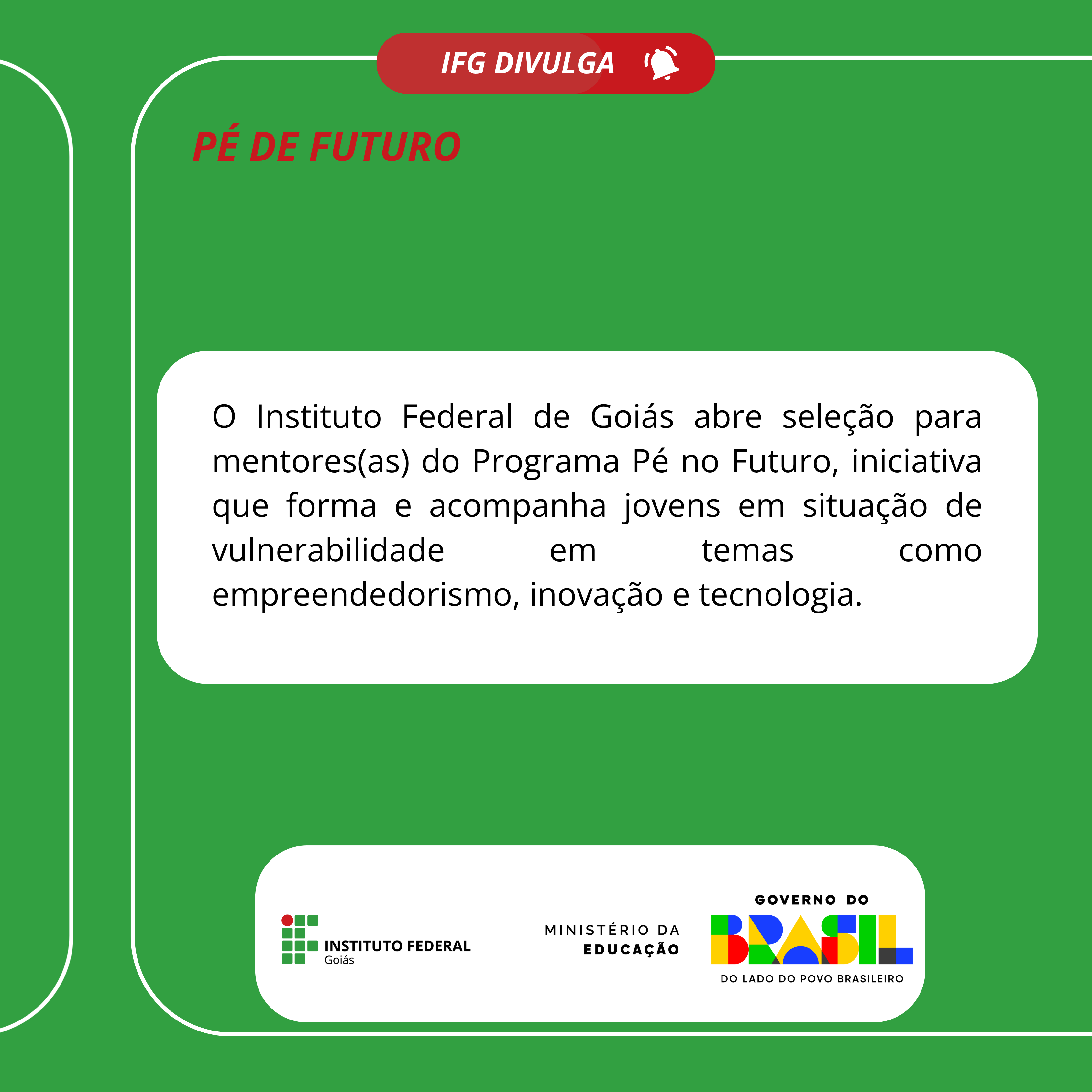O Instituto Federal de Goiás (IFG), por meio da Pró-Reitoria de Extensão, publicou o Edital nº 40/2025, que trata da seleção de estudantes para o Programa Pé no Futuro no Câmpus...