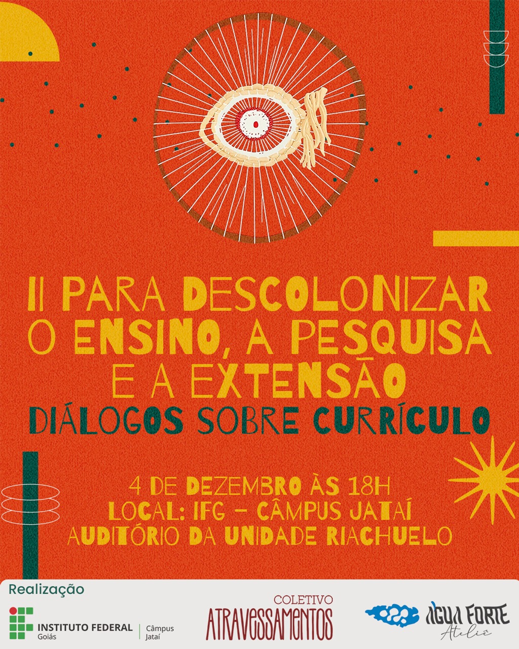 O Câmpus Jataí do Instituto Federal de Goiás e o Coletivo Atravessamentos realizam, no dia 4 de dezembro, a segunda edição do evento “Para descolonizar o ensino, a pesquisa e a...